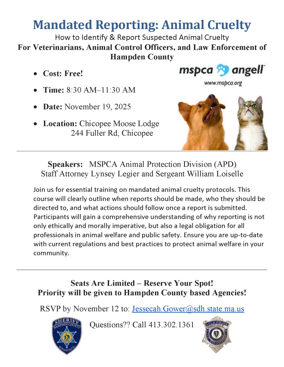 For Veterinarians, Animal Control Officers, and Law Enforcement of Hampden County